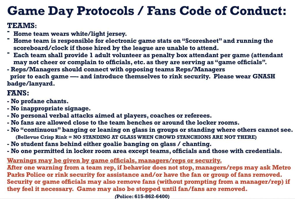 The Greater Nashville Area Scholastic Hockey (GNASH) League is committed to providing a positive hockey experience that develops the skills of the game as well as instills the values of discipline, team work, sportsmanship, leadership and respect. High school age participants can develop and learn the techniques of the game while respecting our coaches, officials, players, volunteers and the game.